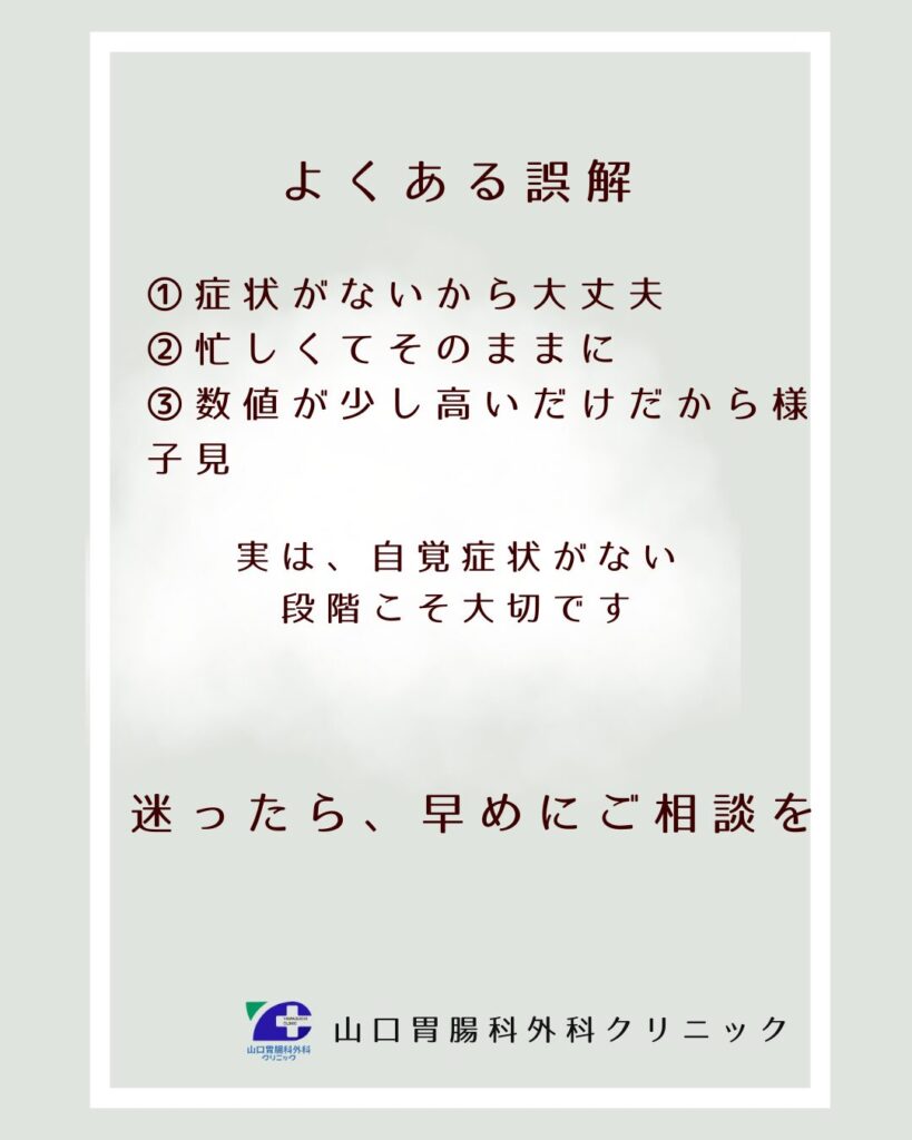 お気軽にご相談ください。詳細はこちら → [一般内科・生活習慣病のご案内] [胃腸科(消化器内科)のご案内]